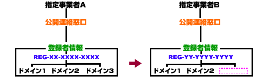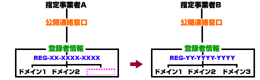 においても、ドメイン名を別の登録者(登録者情報番号)へ移転(譲渡)する場合には同様の手続きが必要となります。