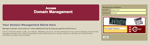 ドメイン名、パスワード、表示されている画像の文字を入力してログインしてください。