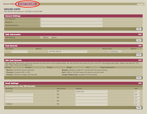 Contact Informationをクリック頂くと下記のページが表示されます。