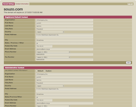 ドメイン登録担当者情報を半角英数字にて、ご記入下さい。